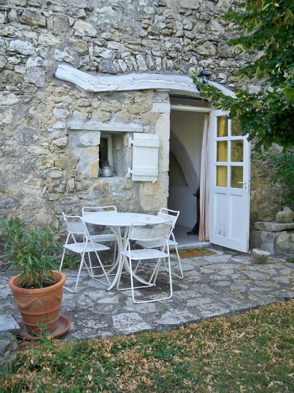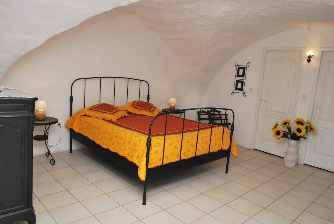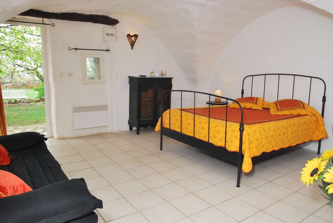 Chambre voûtée disposant d'un lit deux personnes en 160 et d'un canapé lit en 140. (couchages supplémentaires possibles). La voûte a été lissée à la chaux. Salle d'eau et toilettes séparés, entrée et terrasse individuelle